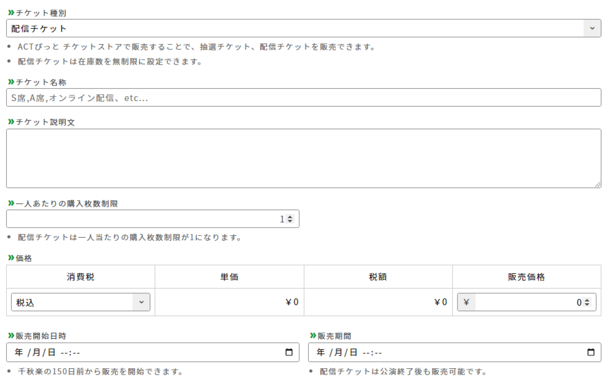配信チケットは在庫数を「無制限」に設定することも可能です。