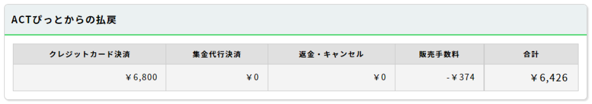 お客様への払い戻しは各月毎に締日単位で集計されACTぴっとから入金されます。