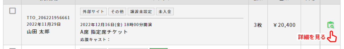 販売履歴から変種対象の販売データを検索して一覧に表示します。「詳細を見る」ボタンをクリックして販売データの詳細画面を表示します。