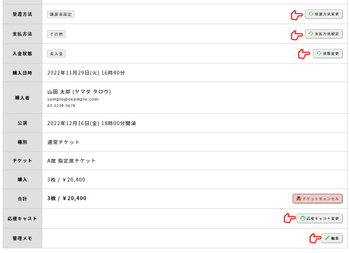各種ステータスは公演終了から14日経過するとステータスの変更を行えなくなります。