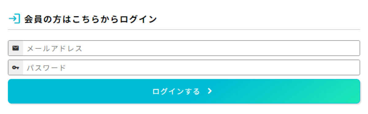 会員登録時に設定した「メールアドレス」と「パスワード」を入力して「ログインする」ボタンをクリックして下さい。