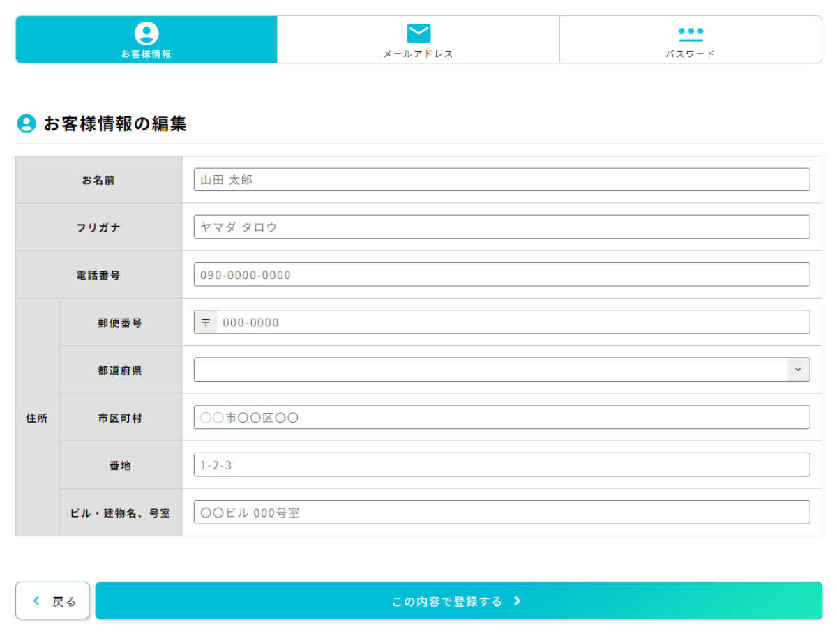 以下のお客様情報を登録・変更できます。